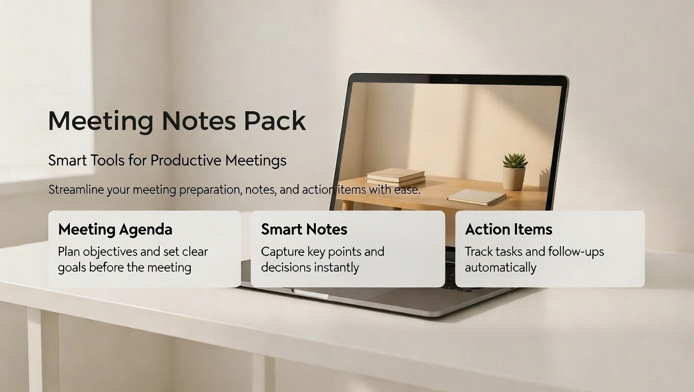 This pack gives you copy/paste workflows to convert raw notes into clean summaries, decisions, action lists, and follow-ups in minutes. Tool-agnostic and beginner-friendly, it’s built for reliable outputs you can reuse every week.