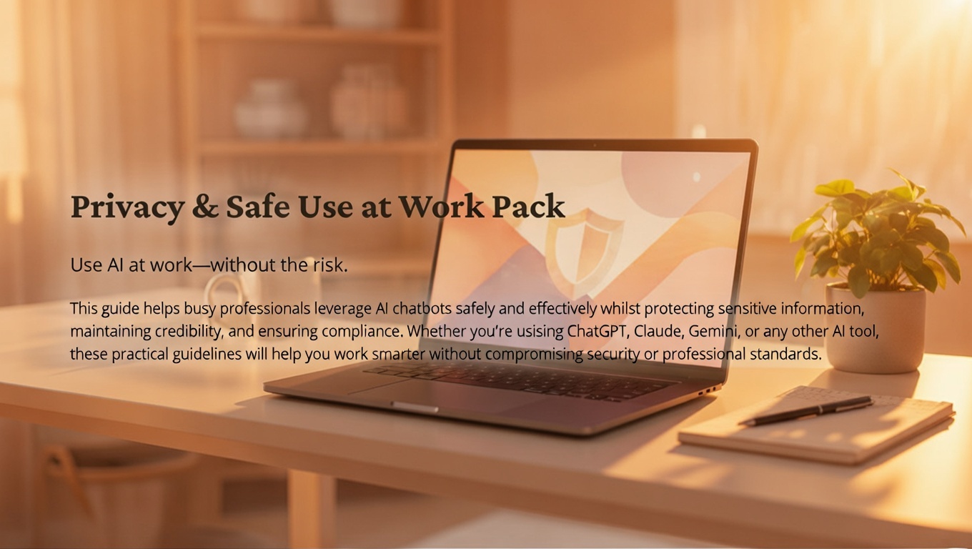 This practical PDF gives you clear, tool-agnostic rules and checklists to use AI safely and professionally. It helps you protect sensitive information, avoid credibility mistakes, and set simple guardrails so you can get the productivity benefits without creating compliance headaches.