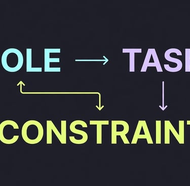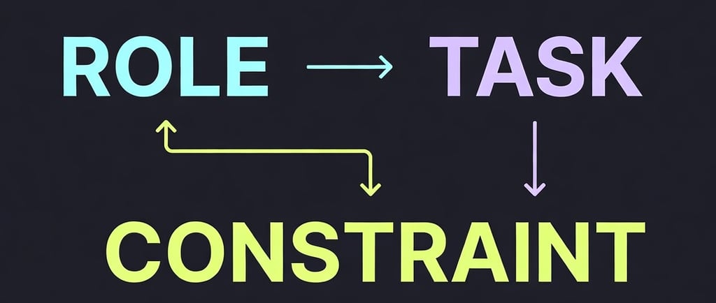 Role — tell the AI who it is. Task — tell it exactly what you want. Constraint — tell it what NOT to do, or how to format it.